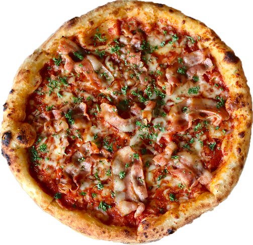 pizzulu's original tomato sauce, italian mozzarella, bacon, 12" brick oven pizza (good for 3 pax), *Recommended with Pizzulu's Signature Truffle Honey Sauce