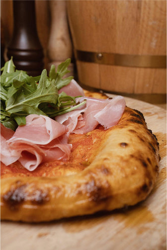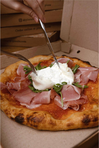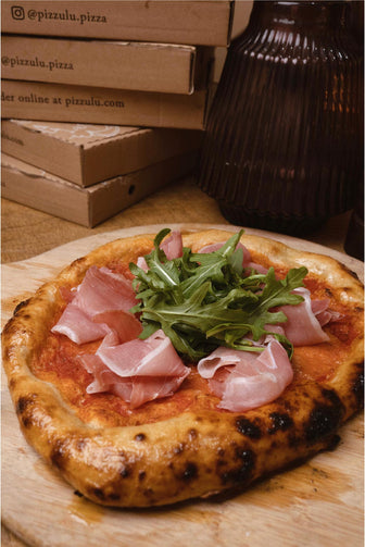 pizzulu’s original tomato sauce, prosciutto, arugula, 12" brick oven pizza (good for 3 pax), *Recommended with Pizzulu's Signature Truffle Honey Sauce & Imported Italian Burrata