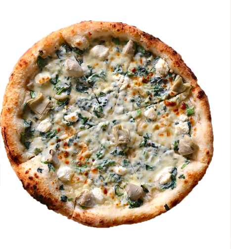 pizzulu’s original spinach cream, mozzarella, goat cheese, artichokes, 12" brick oven pizza (good for 3 pax), *Recommended with Pizzulu's Signature Truffle Honey Sauce